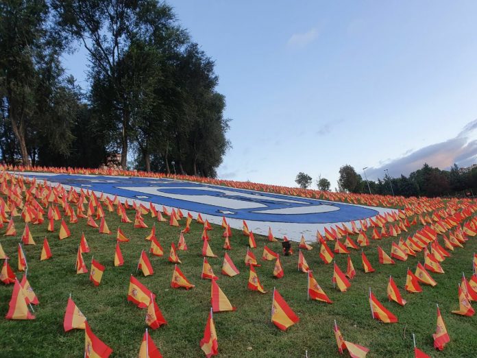 La Asociación Nacional de Víctimas y Afectados por Coronavirus (ANVAC) ha colocado 53.000 banderas de España sobre el césped del Parque de Roma, en Madrid, para homenajear a todos los españoles muertos por coronavirus. Una estampa visible desde la M-30.
