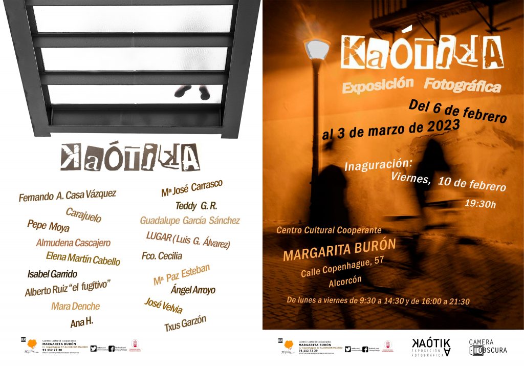 Tras su paso por Leganés a finales de 2022, la Asociación Fotográfica Camera Obscura hace escala en Alcorcón, desde este 6 de febrero, para exponer la particular mirada a través de sus máquinas de 18 fotógrafos. Kaótica, que representa sendas historias de estos artistas, puede visitarse en el Centro Cultural Margarita Burón, hasta el 3 de marzo.