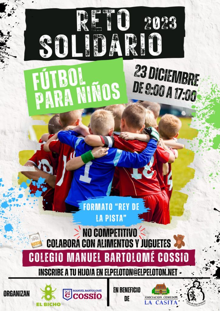 Fuenlabrada volverá a ser un año más escenario de un evento organizado por la Plataforma Retos Solidarios, que en esta ocasión se ha decantado por promover un torneo de fútbol en formato ‘rey de la pista’ -el equipo que gana sigue jugando- que tendrá lugar este sábado 23 de diciembre en las instalaciones del colegio Manuel Bartolomé Cossío.