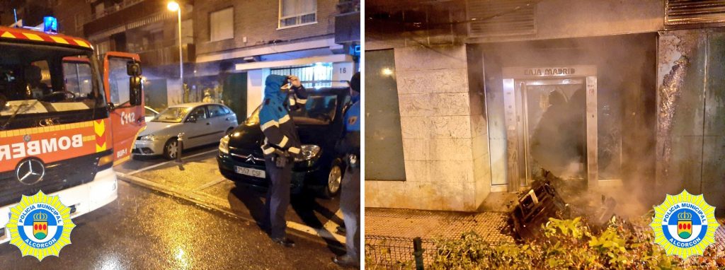 La Policía de Alcorcón investiga los incendios de una moto y un sillón frente a una sucursal bancaria