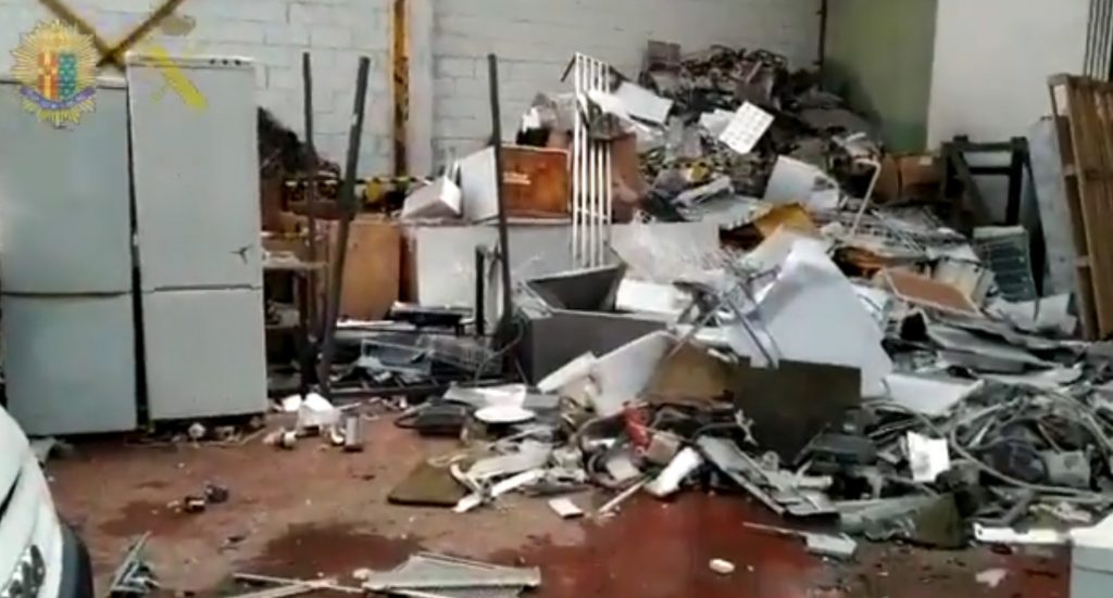 Se detecta una incorrecta gestión de residuos al realizar vertidos tóxicos al sistema integral de saneamiento y posibles emisiones contaminantes a la atmósfera por RAEE, así como un presunto delito de defraudación de fluido eléctrico y otro delito contra los trabajadores. pic.twitter.com/8dAtc38Xz3