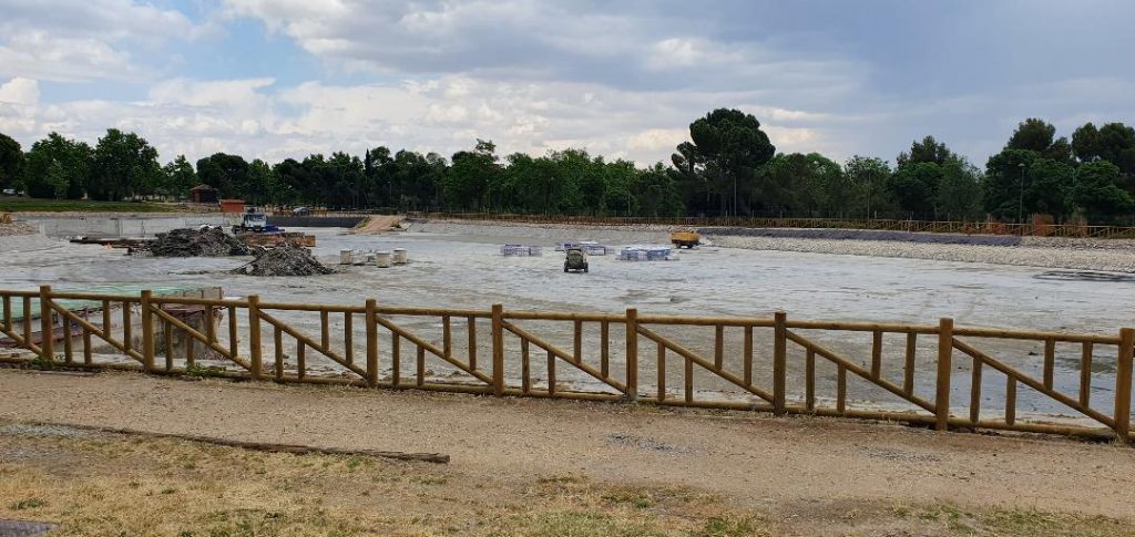 Fue a principios del mes de diciembre de 2022 cuando se iniciaron unas obras largamente esperadas y que incluían diversas actuaciones de mejora en el parque Alhóndiga, afectando a caminos, jardines, mobiliario urbano, etc. Pero sobre todo al emblemático lago de este espacio getafense, ya que entre otras cosas se contemplaba la impermeabilización del vaso así como la construcción de un escenario para albergar espectáculos.