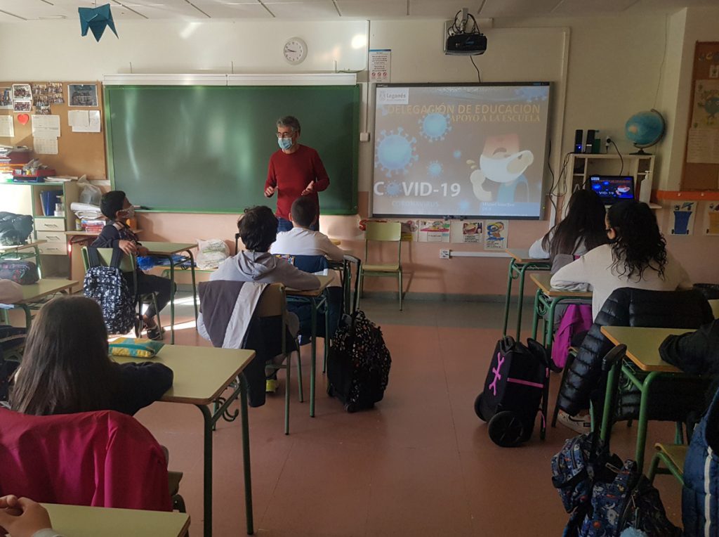 El Ayuntamiento de Leganés está impartiendo las charlas ‘Convivir con Covid-19’ a 3.700 jóvenes de colegios e institutos de la ciudad. Se trata de un programa de la Concejalía de Educación y en el que se forma a niños, niñas y jóvenes de Educación Primaria (5º y 6º) y Secundaria sobre métodos de prevención del contagio y transmisión de la Covid-19.