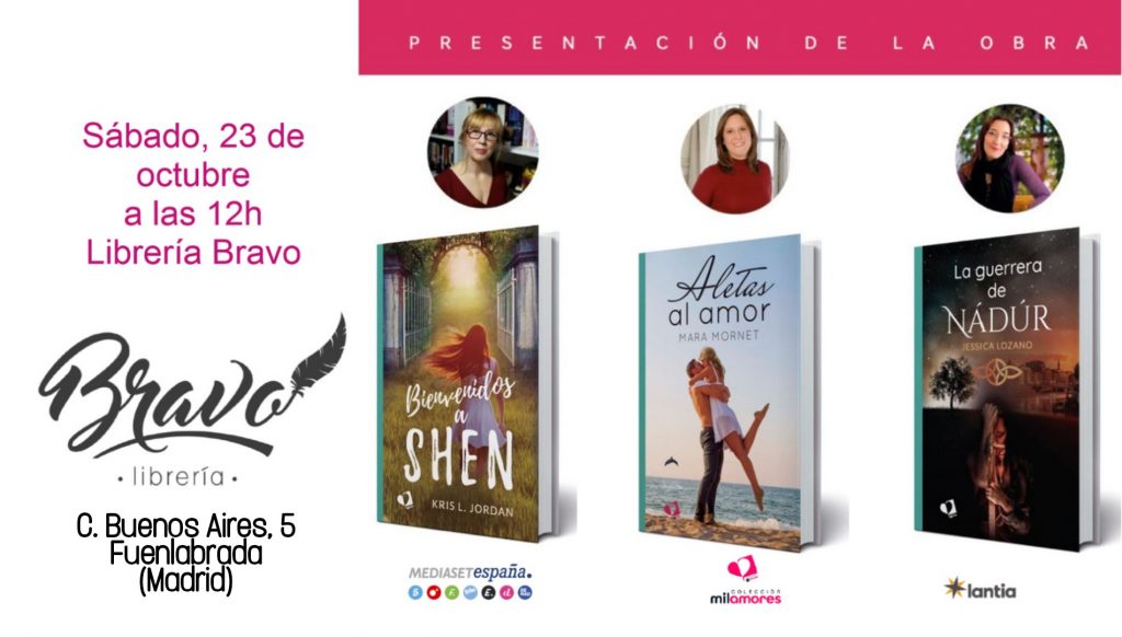 La Librería Bravo de Fuenlabrada acoge este sábado, 23 de octubre, a partir de las 12.00 horas, la presentación de tres novelas sobre el amor, el espacio, el tiempo y la ecología, entre otros asuntos, que llevan la firma de las escritoras madrileñas: Kris L. Jordan, Mara Mornet y Jessica Lozano.