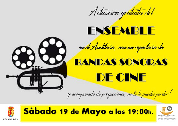 La banda integrada por 18 vecinos de Arroyomolinos interpretará 12 bandas sonoras de cine mientras en una gran pantalla ubicada en el Auditórium se van a proyectar imágenes de las propias películas. Filmes como 2001 Odisea en el espacio, Rocky, El Padrino, La Vida es Bella, El Bueno, el Feo y el Malo o Batman.