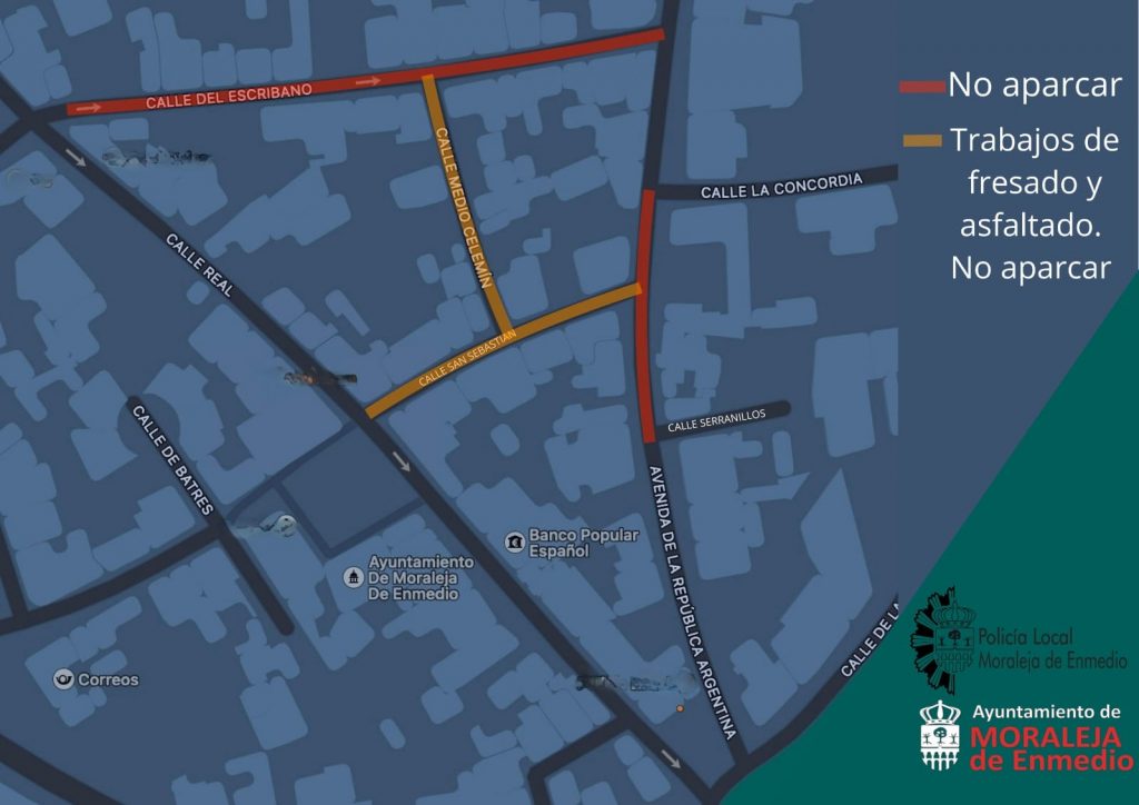 El motivo, según ha explicado el Ayuntamiento de Moraleja de Enmedio, es que se pueden desprender restos de grava y áridos de los trabajos de fresado, que podrían afectar tanto a las lunas como a la chapa y pintura de aquellos turismos aparcados.