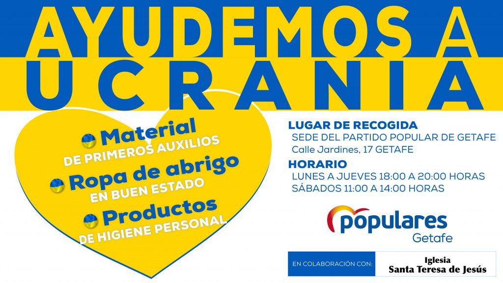 En el caso del Partido Popular de Getafe, su campaña contará con la colaboración de la Iglesia Santa Teresa de Jesús del municipio y se llevará a cabo bajo el lema ‘Ayudemos a Ucrania’.