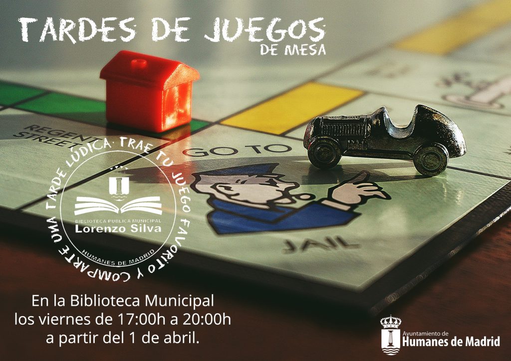 La Concejalía de Cultura de Humanes de Madrid ha organizado las Tardes de Juegos de Mesa en la biblioteca municipal Lorenzo Silva. Arrancará a partir del 1 de abril y el horario será de 17.00 a 20.00 horas, en la sala de talleres de la biblioteca.