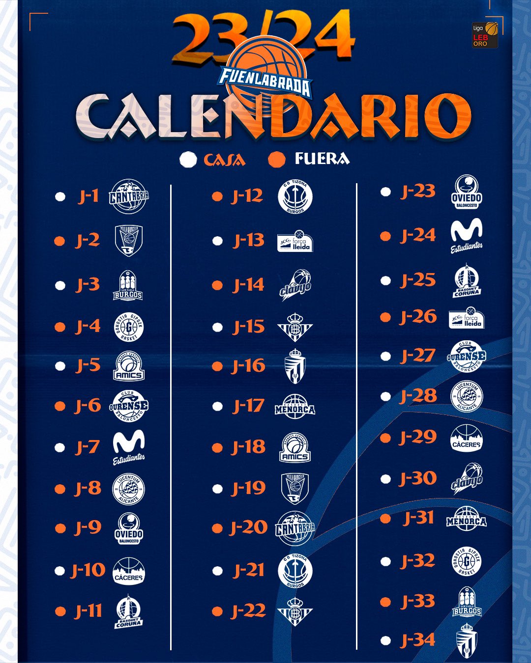 La competición arrancará el viernes 6 de octubre y el ‘Fuenla’ recibirá el día siguiente, sábado 7, al Grupo Alega Cantabria en el pabellón Fernando Martín. Curiosamente el equipo fuenlabreño cerrará también en casa la fase regular frente al UEMC Valladolid el sábado 11 de mayo, ya que una de las novedades del calendario es su carácter asimétrico.