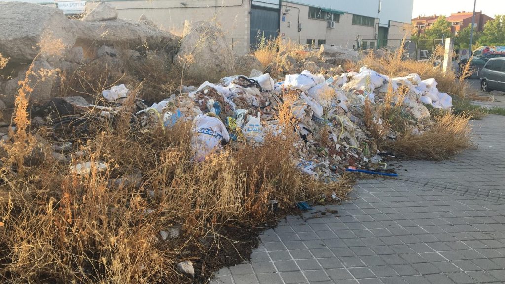 Según manifiestan esta fábrica fue abandonada en su día y desde hace años está siendo utilizada para verter todo tipo de escombros. Las dimensiones de las montañas de residuos llegan a alcanzar en algunos lugares hasta los dos metros y la aparición de roedores se ha convertido en una estampa habitual.