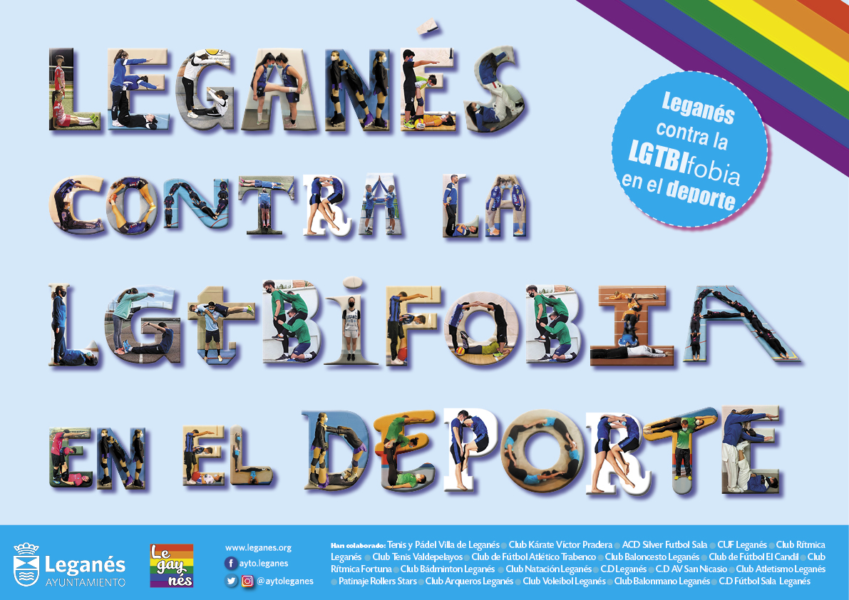 El Ayuntamiento de Leganés, la Asociación Legaynés y los clubes deportivos locales han sumado sus fuerzas un año más para recordar el Día contra la LGTBIfobia en el deporte. Para ello, los jugadores y jugadoras de los clubes participantes en esta iniciativa han formado las distintas letras del lema ‘Leganés contra la LGTBIfobia en el deporte’. Cada entidad se ha fotografiado formando una de las letras.