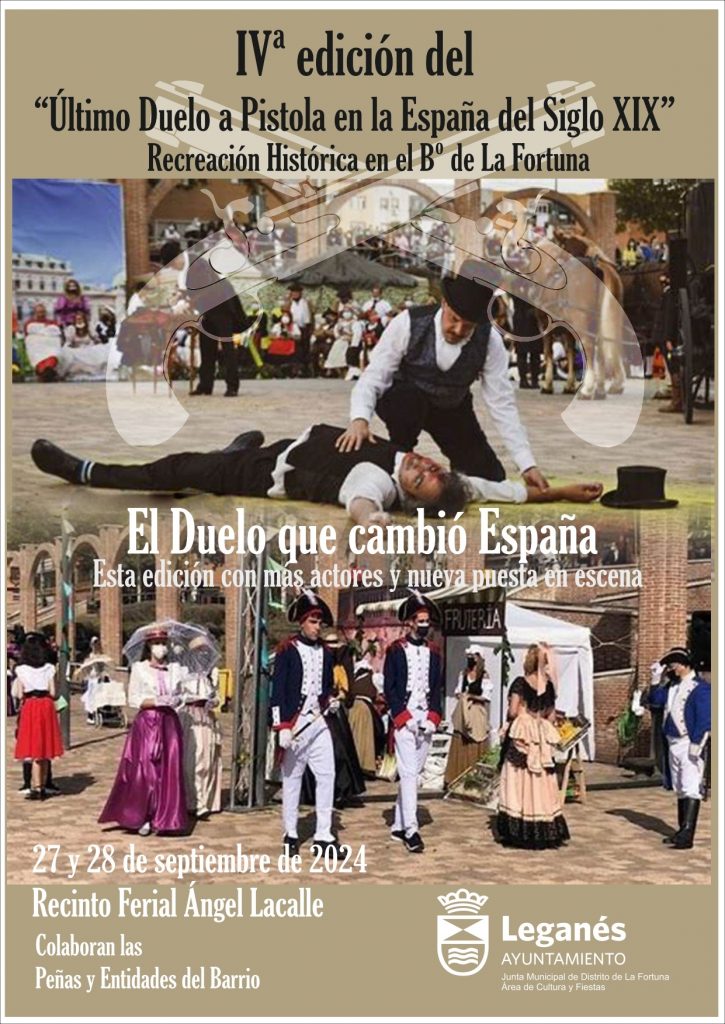 El Recinto Ferial de La Fortuna acogerá este sábado la cuarta edición de uno de los eventos más singulares de cuantos se celebran en la ciudad a lo largo del año. Se trata de la recreación histórica del último duelo a pistola de España, que se produjo en Leganés en 1870 y que enfrentó al Duque de Montpensier y al Infante don Enrique.