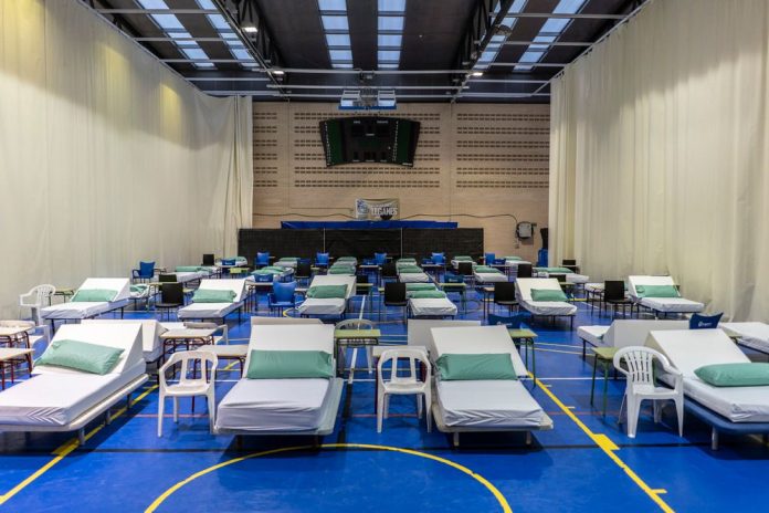 Todo está ya preparado para que el hospital de campaña habilitado en el pabellón Carlos Sastre de Leganés pueda empezar a funcionar, ya que sólo se está a la espera de disponer de los tanques de oxígeno. El montaje de este hospital ha contado con la supervisión de Médicos Sin Fronteras y cuando funcione a pleno rendimiento dispondrá de hasta 150 camas.