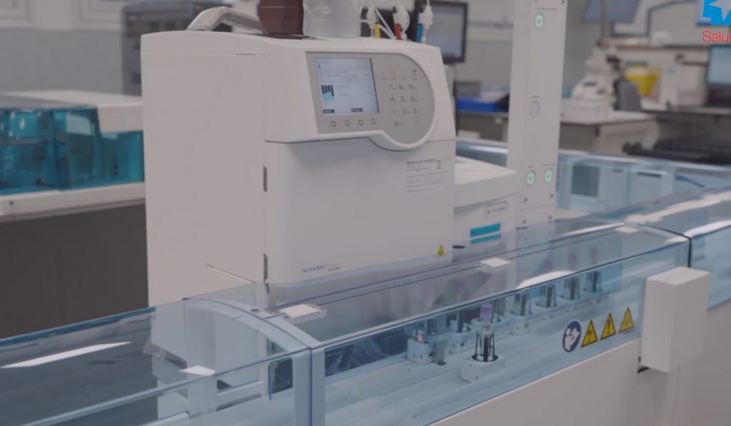 El área del Laboratorio cuenta ahora con un sistema robótico para la circulación de las muestras. Sin necesidad de manipulación manual, éstas llegan desde la sala de extracciones a través de una cadena automotriz y después son transportadas en un vehículo especial mediante de unas vías con dobles raíles, cruces, cambios de sentido y rotondas.
