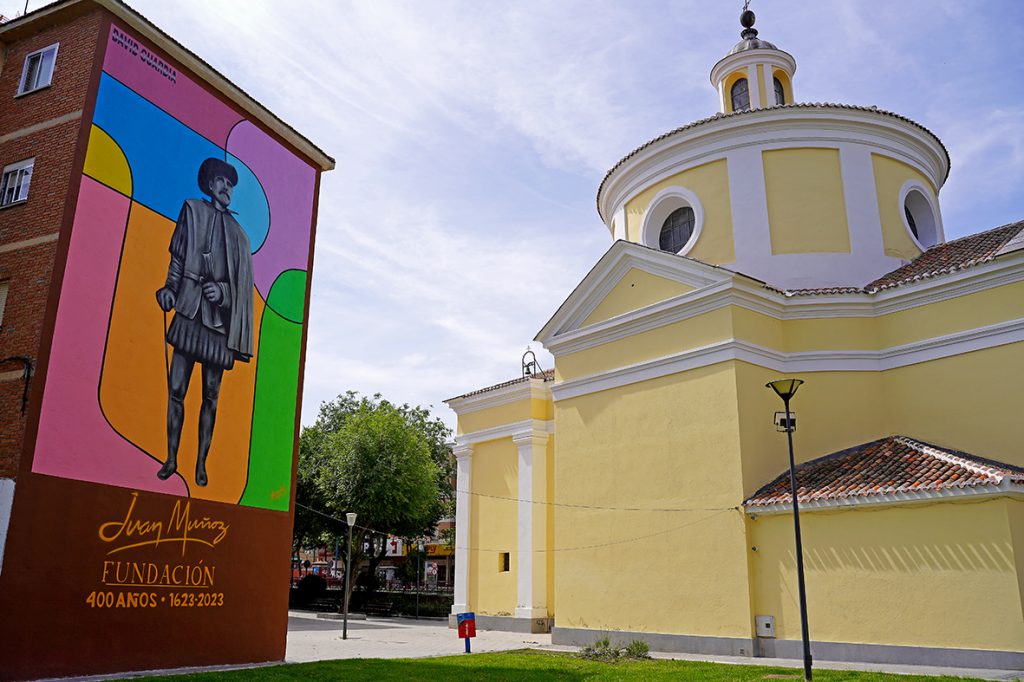Leganés cuenta con un nuevo atractivo cultural. Se ha estrenado, junto a la Iglesia de San Nicasio, un gran mural de 13 metros de alto por 7 de ancho, para homenajear a la figura de Juan Muñoz y al papel de la Fundación Juan Muñoz en la ciudad, institución que, en este 2023, cumple 400 años de vida.