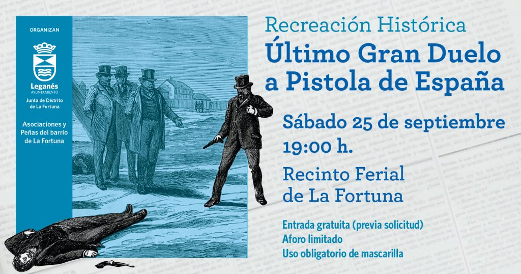 La Junta de Distrito de La Fortuna en Leganés organiza este sábado, en el recinto ferial Ángel Lacalle, ‘El último gran duelo a pistola de España’, un gran espectáculo con más de 200 participantes, actores, música en directo y Mercado Goyesco de 11.00 a 20.00 horas.