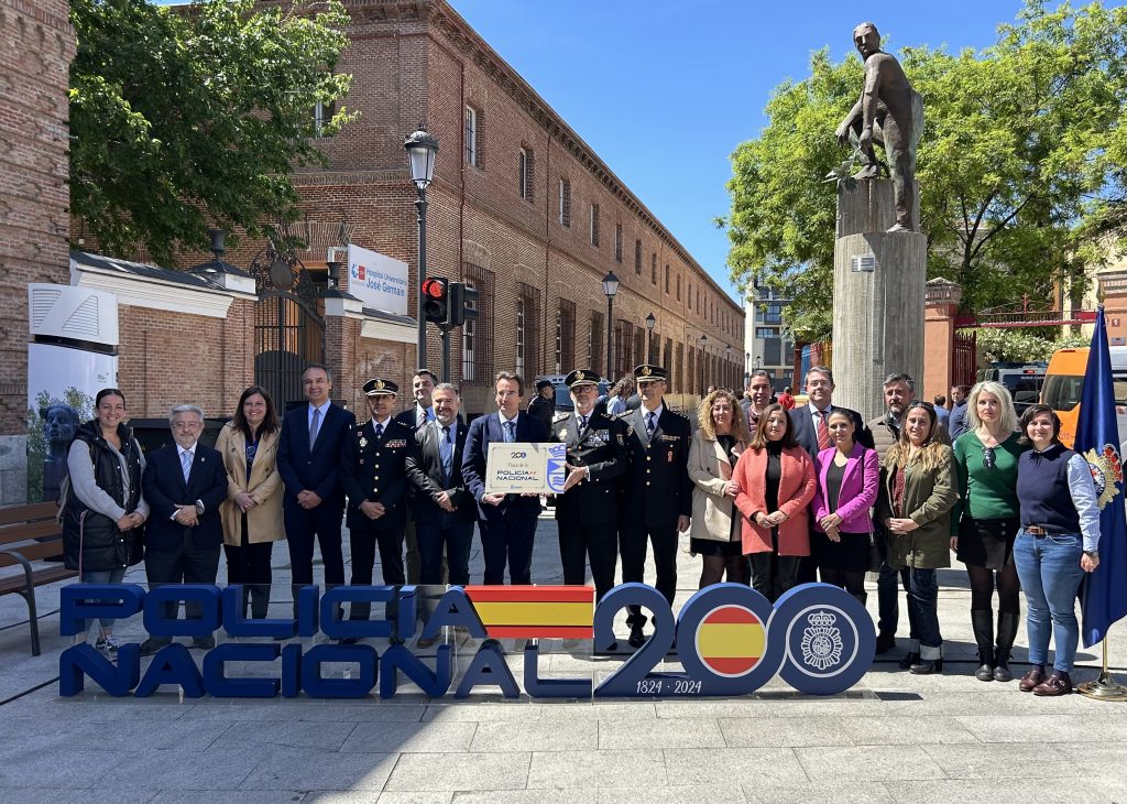 El Ayuntamiento de Leganés ha inaugurado este miércoles 24 de abril, la denominación de la Plaza de la Policía Nacional como homenaje al servicio que presta esta institución, coincidiendo con el 200 aniversario de su fundación. El nuevo espacio peatonal de la zona centro (entre las calles Sol, Charco y Luna) recibe este nombre después de que fuera aprobado en el Pleno del pasado mes de enero, con los votos a favor de PP, ULEG y VOX, dos días antes de que la Policía Nacional cumpliera su bicentenario.