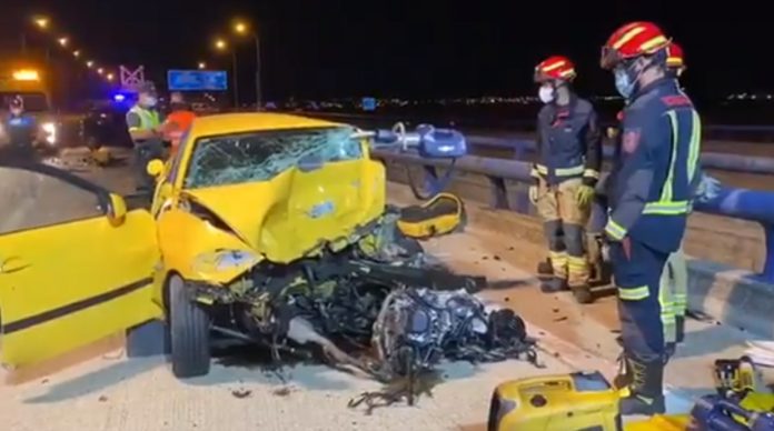 Este doble accidente tuvo lugar pasadas las 00.30 horas de este viernes a la altura del kilómetro 55 de la M-50, en Leganés. Un vehículo colisionó contra otro, un choque de chapa, que provocó que uno de ellos, un Seat León amarillo, hiciera un trompo y quedara en medio de la vía y en sentido contrario a la marcha. El otro quedó a una distancia de 100 metros pero en un lateral.
