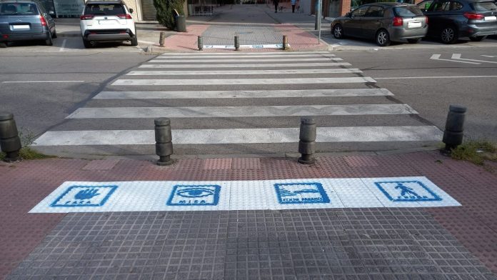En estos pasos de cebra se pintan cuatro pictogramas con los mensajes ‘para’, ‘mira’, ‘coche parado’ y ‘cruza’, algo que sirve para facilitar la inclusión de las personas con Trastorno el Espectro Autista, pero también de los vecinos y vecinas con discapacidad intelectual, personas mayores, niños y niñas.