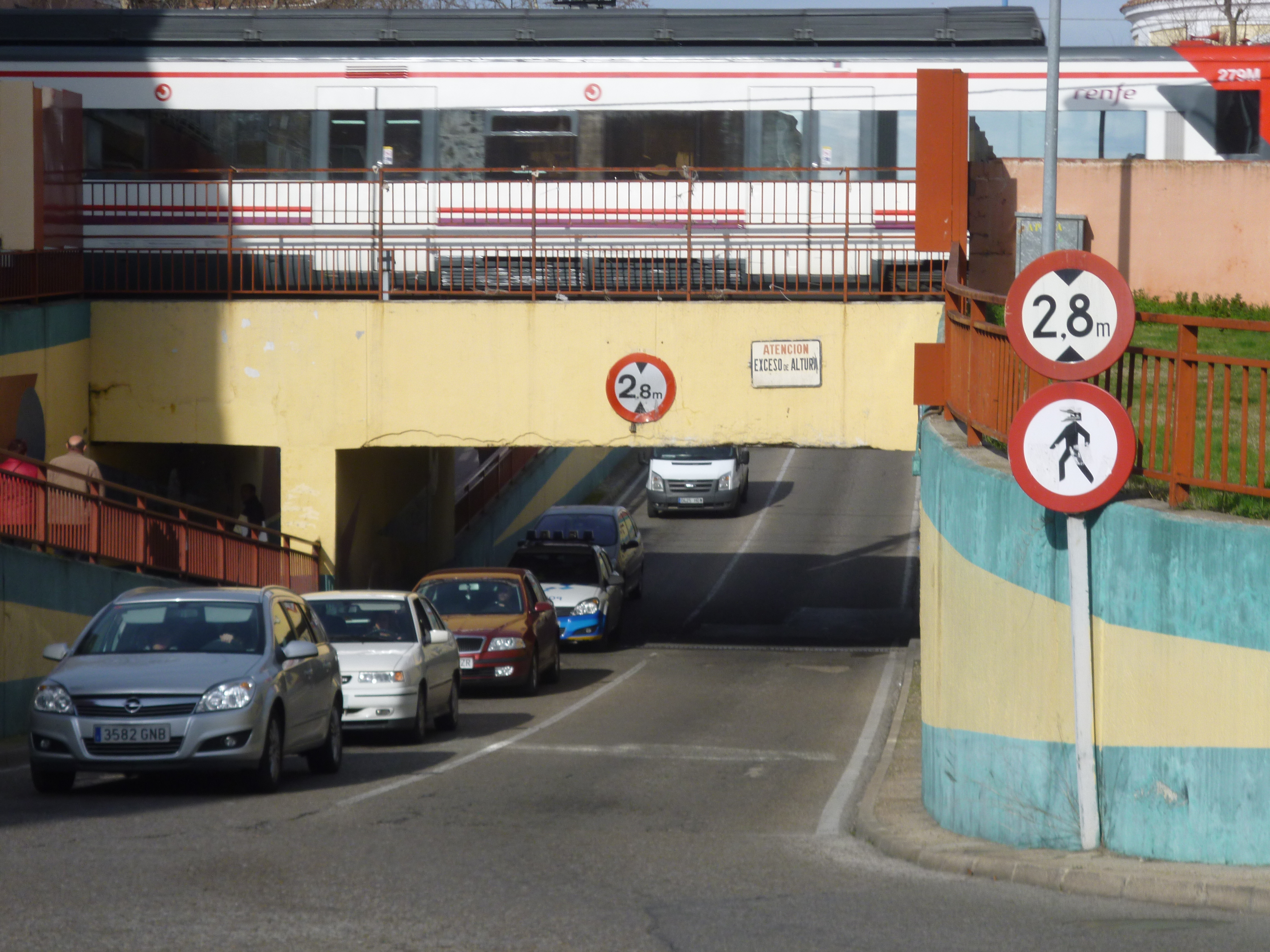 Cada cierto tiempo camiones de mediana envergadura quedan atrapados en el puente bajo la vía del ferrocarril situado a la altura de la avenida del doctor Mendiguchía Carriche entre el barrio de San Nicasio y el casco viejo.