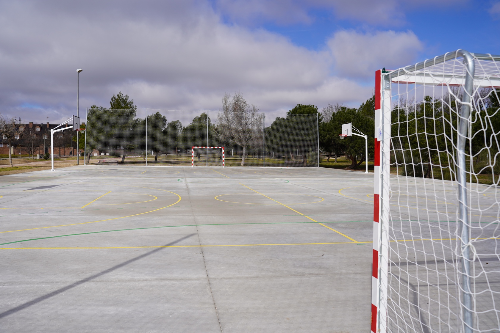 La pista polideportiva cuenta con una superficie de 1.200 metros cuadrados en la que se han instalado dos porterías de fútbol sala con redes y cuatro canastas de baloncesto. Sobre el pavimento de hormigón se han pintado las líneas de los distintos deportes que se pueden practicar en la pista. Además, en un espacio aledaño de 90 metros cuadrado se han instalado cuatro modernas mesas en las que podrá practicarse el tenis de mesa.