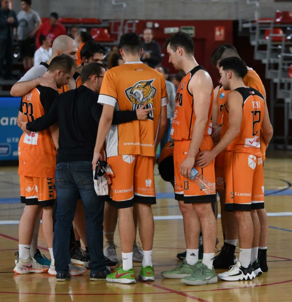 Jugadores del Pintobasket durante un tiempo muerto (foto: Iván Atance)