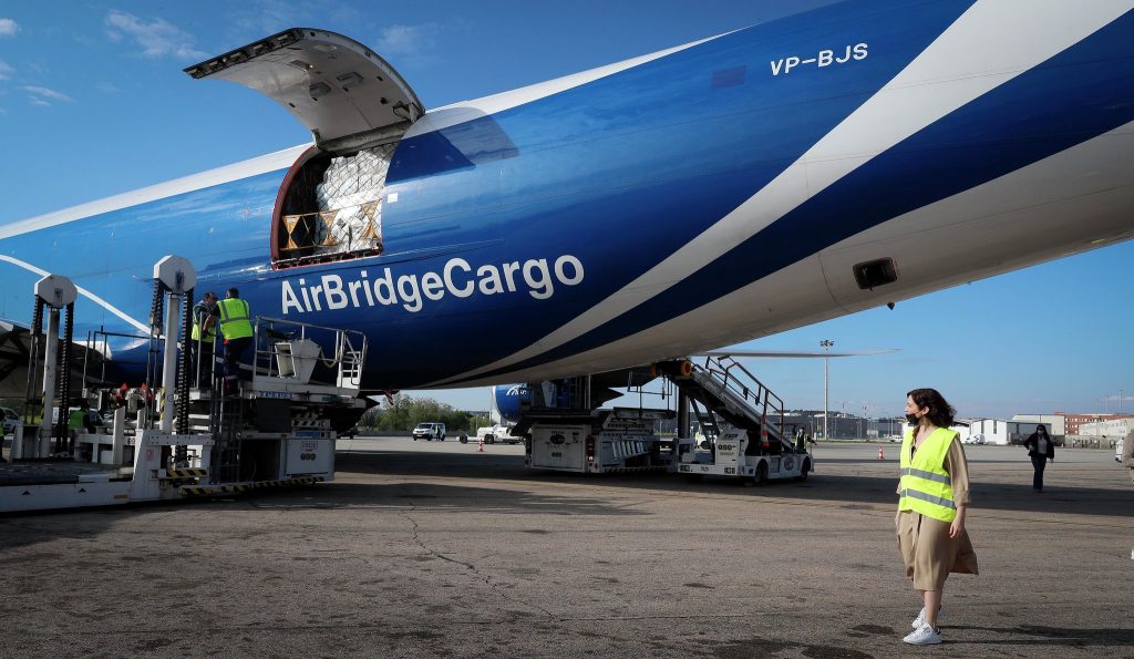 Un tercer avión procedente de China con material sanitario ha aterrizado este domingo en el aeropuerto Madrid Barajas-Adolfo Suárez, donde ha sido recibido por la presidenta de la Comunidad de Madrid, Isabel Díaz Ayuso. En esta ocasión se trata de 113 toneladas de material que serán distribuidos entre profesionales y pacientes de los hospitales de la región, lo que supone la mayor carga llegada a nuestro país en esta emergencia sanitaria.