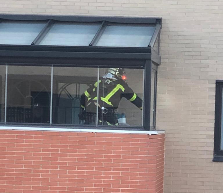 Milagro en Leganés. Los Bomberos de la Comunidad de Madrid han rescatado a una anciana tras originarse un incendio, en el ático de un edificio ubicado en la calle Los Frailes, dentro de la urbanización Daimiel 2.