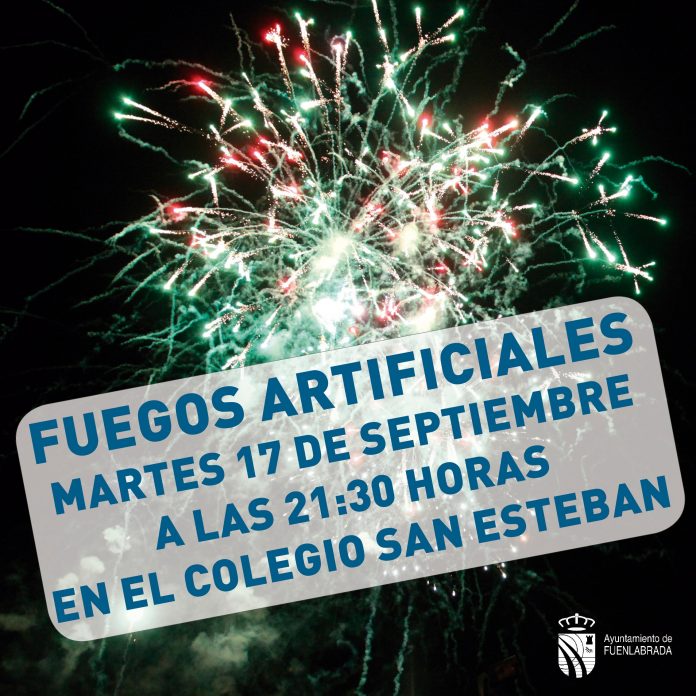 Debido a la previsión de lluvia para este fin de semana de la Agencia Estatal de Meteorología (Aemet), el Ayuntamiento de Fuenlabrada ha tomado la decisión de cambiar la fecha de los fuegos artificiales de inicio de fiestas al martes 17 de septiembre a las 21.30 horas.