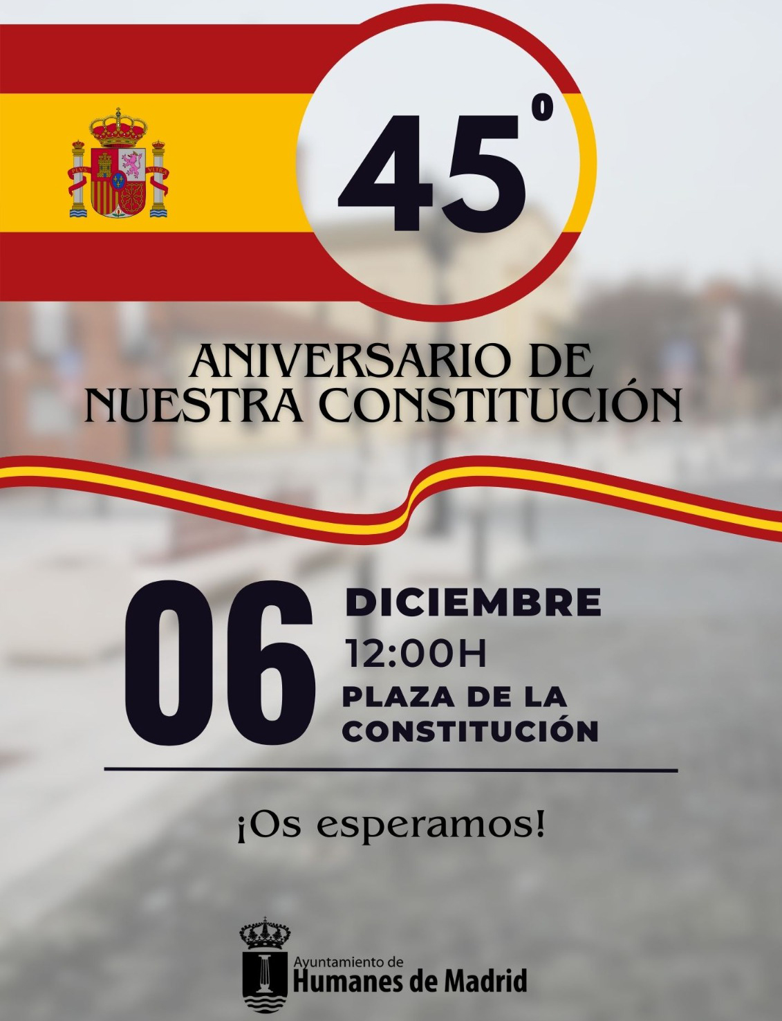 Con el objetivo de conmemorar esta señalada fecha, el Ayuntamiento de Humanes de Madrid organiza un acto solemne para el próximo 6 de diciembre, a las 12:00, en la Plaza de la Constitución. Allí se dará lectura a diversos artículos de la Carta Magna, y en el que podrán participar todos aquellos vecinos que lo deseen poniendo su voz a uno de los artículos.
