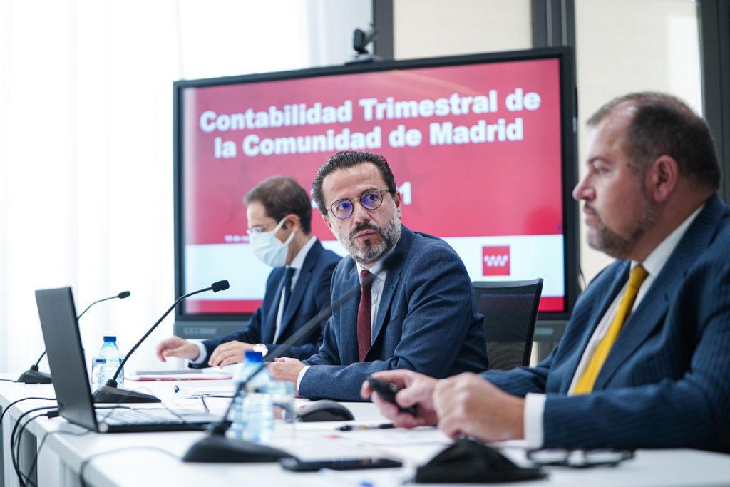 En el balance del segundo trimestre, el PIB de la Comunidad de Madrid ha crecido un 1,6% y revierte así la tendencia negativa de los tres primeros meses del año, cuando la economía española cayó un 1,4%. Un crecimiento, según el consejero, que indica que el Gobierno regional está trabajando «en la buena dirección» y avanza «en la recuperación económica gracias a las políticas económicas y fiscales».