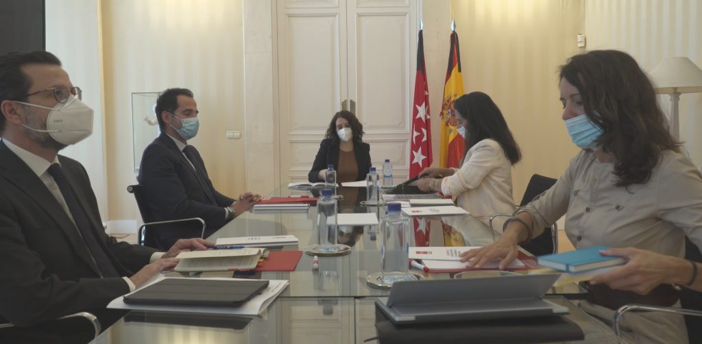 La portavoz de VOX en la Asamblea de Madrid, Rocío Monasterio, ha presentado en la reunión que ha mantenido este jueves, con la presidenta de la Comunidad de Madrid, Isabel Díaz Ayuso, y el vicepresidente, Ignacio Aguado, un dossier de reducción del gasto público y político «ineficaz».