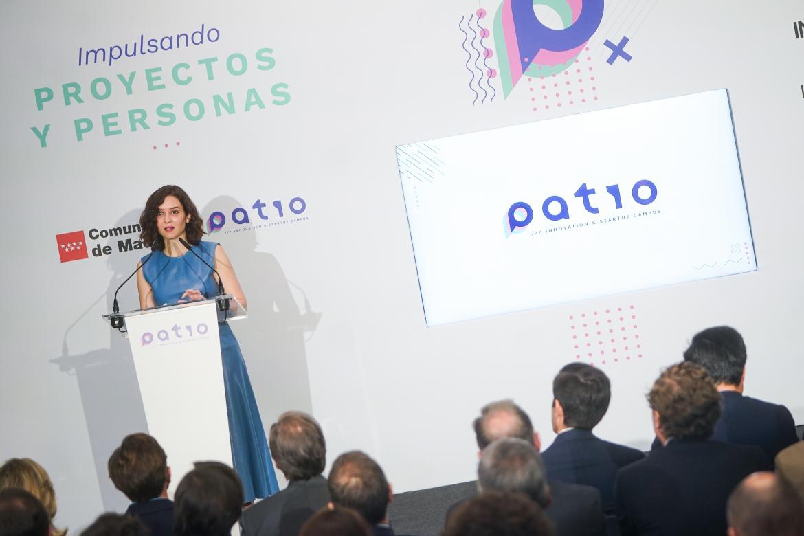La presidenta de la Comunidad de Madrid, Isabel Díaz Ayuso, ha presentado Patio, un campus de emprendimiento e innovación con el que contará la región, único en España e Hispanoamérica, que nace como referente mundial en la creación de nuevas empresas emergentes, y en la línea de la Station F de París.