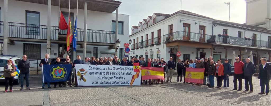 Un grupo de medio centenar de vecinos de Valdemoro, convocados a través de redes sociales, han manifestado su solidaridad con los ‘héroes de Barbate’, los dos agentes de la Guardia Civil asesinados en pasado fin de semana por una banda de narcos en esa localidad gaditana.