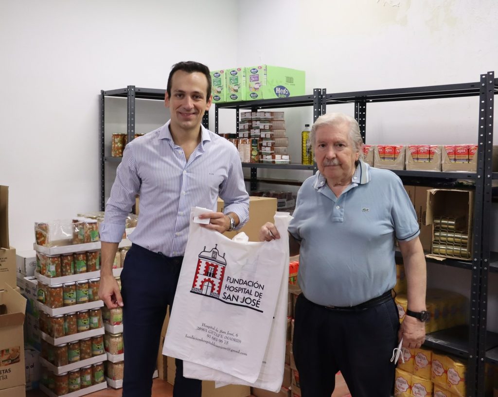 El candidato ha mantenido un encuentro con Manuel Galeote, presidente del Patronato Hospital de San José, uno de los puntos más importantes de recogida de alimentos en Getafe, que se nutre de donaciones de instituciones y particulares y también del banco de alimentos.
