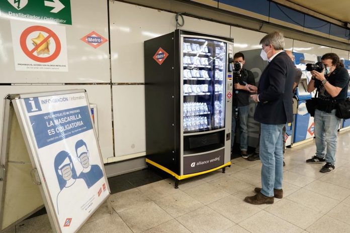 Metro de Madrid va a instalar máquinas de vending con mascarillas e hidrogel, en algunas de las estaciones con más afluencia de viajeros de Metro para facilitar su disponibilidad, teniendo en cuenta que la mascarilla es de uso obligatorio en el transporte público. Una medida que se suma al control de aforo, que arrancará este 25 de mayo.