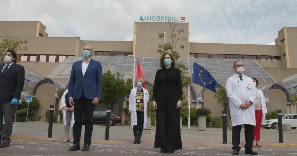Allí han estado la presidenta de Madrid, Isabel Díaz Ayuso, el consejero de Vivienda y Administración Local, David Pérez, y el consejero de Sanidad, Enrique Ruiz Escudero. Junto a ellos, personal sanitario del centro, que han terminado el minuto de silencio con un aplauso, para reconocer también el trabajo de médicos y enfermeros.