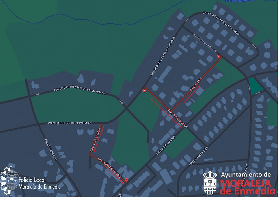 En este sentido, la Policía Local de Moraleja de Enmedio ya informado a los vecinos que en la calle Segovia sólo se podrá acceder a ella a través de la Avenida 25 de Noviembre.
