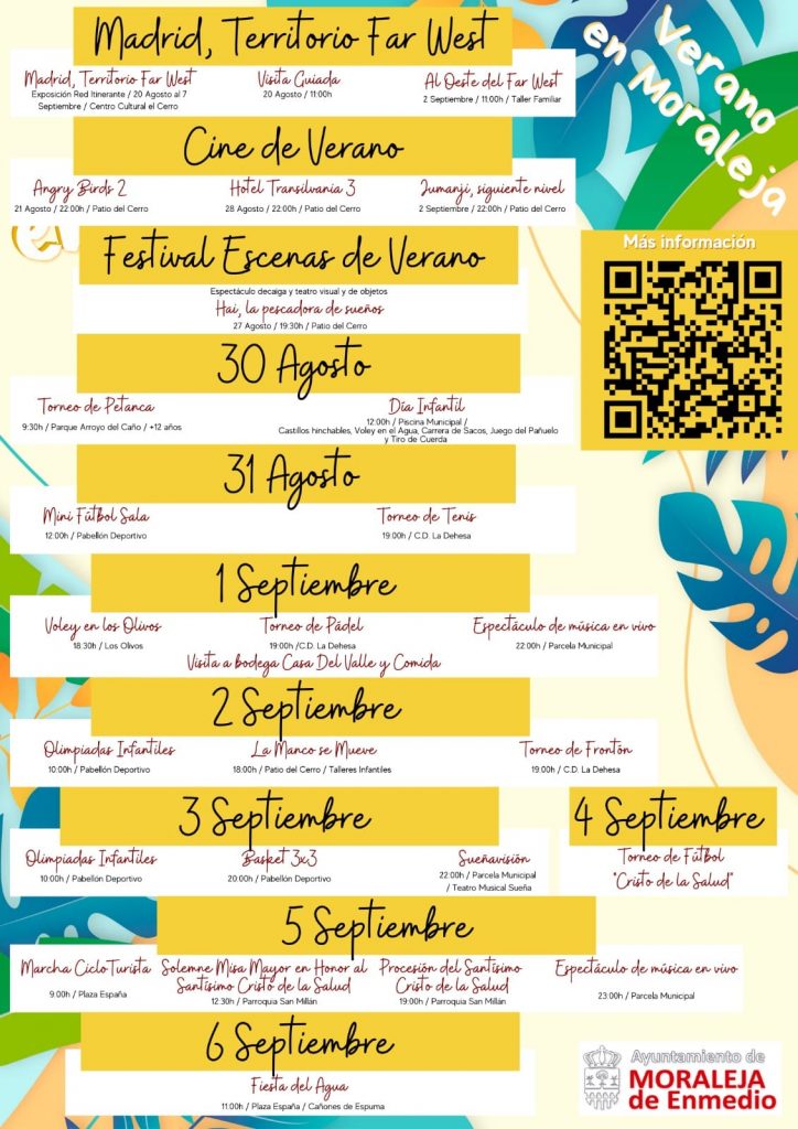 El Ayuntamiento de Moraleja de Enmedio ha decidido sustituir este 2021 las fiestas patronales en honor al Santísimo Cristo de la Salud, por una semana cultural y deportiva, con actividades para todos los públicos y ninguna programación litúrgica.