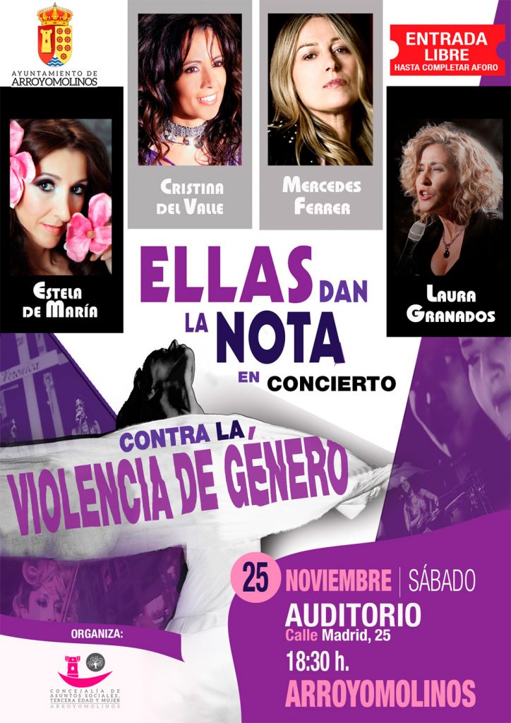 Cristina del Valle, Mercedes Ferrer, Laura Granados y Estela de María son algunas de las voces femeninas que atronarán en el Auditorium de Arroyomolinos este sábado, 25 de noviembre, Día Internacional de la Eliminación de la Violencia Contra la Mujer. Desde las 18.30 horas, las cuatro artistas viajan del pop al rock pasando por los fados o el folk. Un grupo de mujeres que, junto al público arroyomolinense, unen su voz, su música y su talento para gritar contra el machismo y la violencia de género.