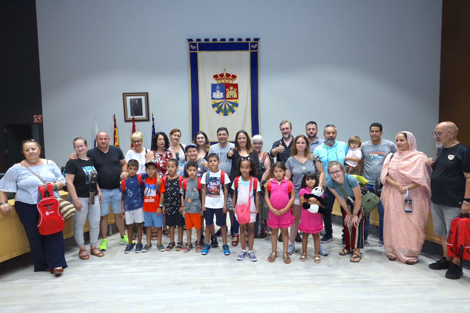 Los tenientes de alcaldes de Fuenlabrada: Mónica Sebastián y Francisco Paloma han recibido este 27 de julio, miércoles, a los 9 niños y niñas, de entre 7 y 8 años, procedentes de los campamentos saharauis que pasan el verano acogidos por otras tantas familias fuenlabreñas. Los ediles les han dado la bienvenida, junto a sus familias de acogida, en el Salón de Plenos, donde les han hecho entrega de algunos obsequios.