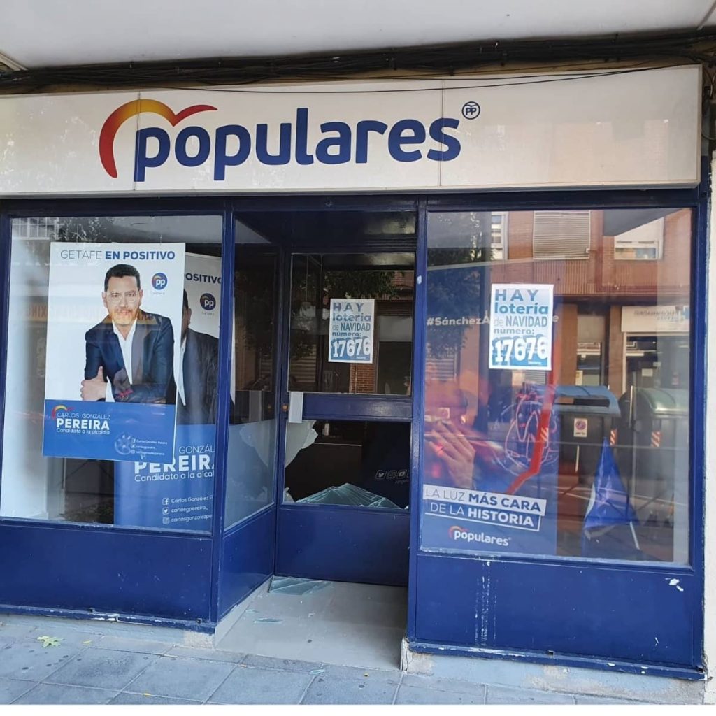 El PP de Getafe ha denunciado este lunes, un nuevo ataque contra su sede, donde han reventado los cristales de la puerta y provocado daños materiales durante la pasada noche del viernes al sábado, lo que se suma a un historial de actos violentos contra la sede de los populares en el municipio.
