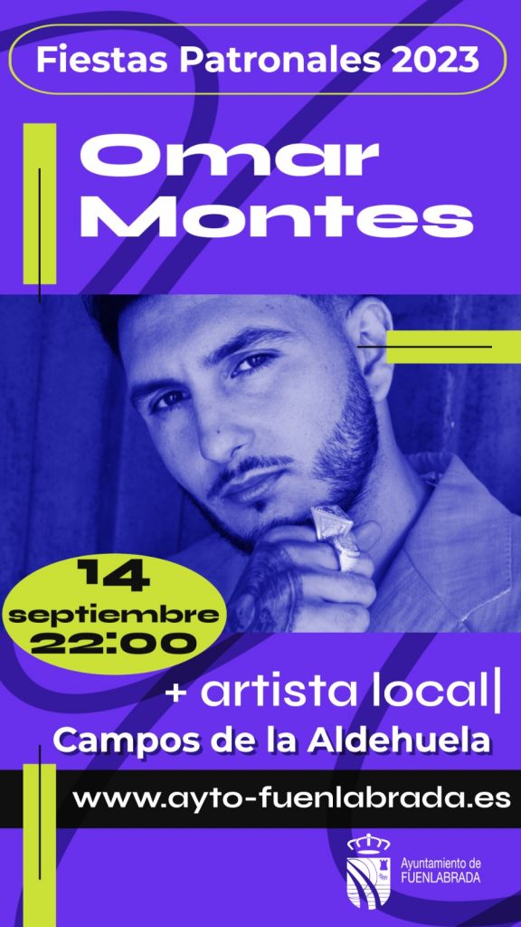 Omar Montes protagonizará el primero de los tres grandes conciertos que se celebrarán en el campo de La Aldehuela, con motivo de las Fiestas Patronales de Fuenlabrada, que tendrán lugar entre el 8 y el 17 de septiembre, según ha avanzado el Ayuntamiento.