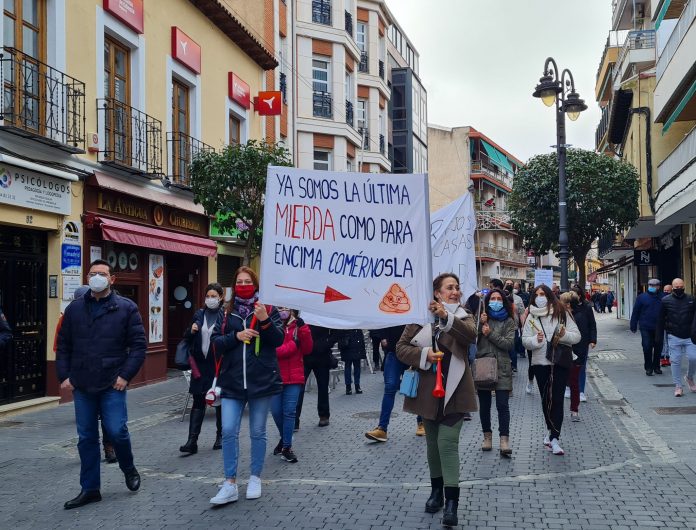 “¡Aguas fecales, fuera de Perales!” fue el grito que más se escuchó en la marcha, con una pancarta en la que se podía leer: «Ya somos la última mierda, como para encima comérnosla». Un rechazo mayoritario a estas obras, que los vecinos temen llenen de insectos olores y ruido su barrio.
