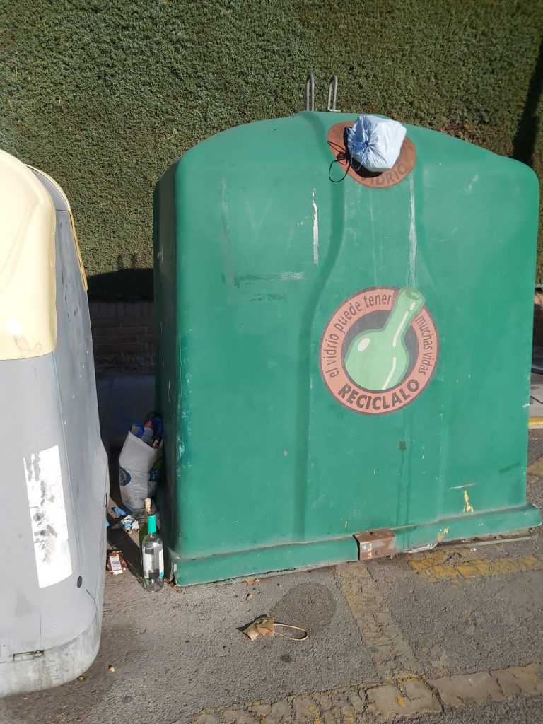 Piden al Ayuntamiento de Pinto que recoja el vidrio que se acumula en los contenedores