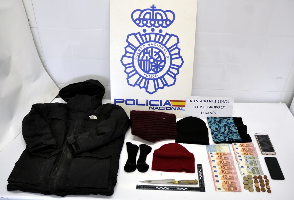 Los investigadores establecieron un dispositivo de prevención de robos en las zonas afectadas, en el cual consiguieron detener el pasado 21 de enero a estos dos individuos. Los agentes efectuaron una entrada y registro en el domicilio del arrestado mayor de edad donde se intervinieron numerosos efectos que le relacionaban directamente con la autoría de hasta seis atracos con arma blanca en Leganés.