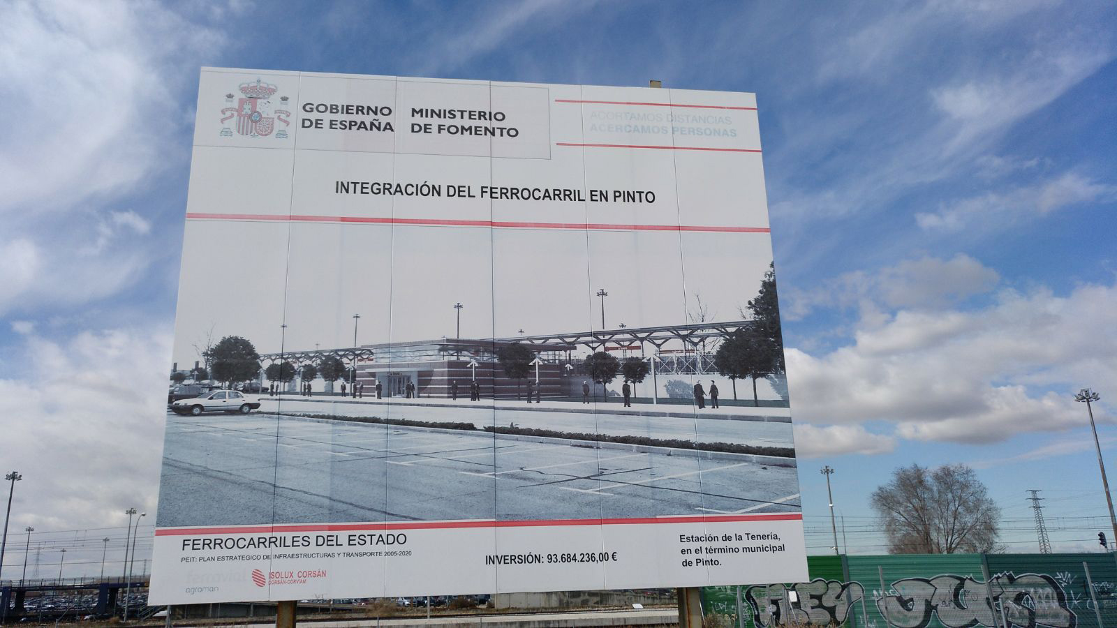 Un cartel del Ministerio de Transportes en el que ya se anunciaba en 2024 la estación de La Tenería