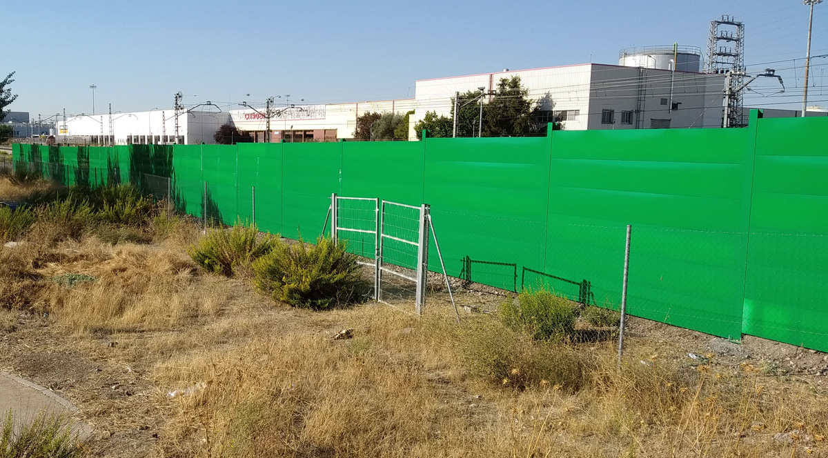 El total del conjunto instalado para evitar la contaminación acústica tiene una extensión de unos 250 metros. Se han ubicado tres tramos de pantallas, con una altura de 3 metros. Anteriormente en la zona existían unos muros de protección acústica del ferrocarril, que fueron eliminados, sin previo aviso, como consecuencia del desvío de líneas de servicios incluido en las obras del Proyecto Constructivo de ampliación de la tercera y cuarta vías de la línea C-3 de cercanías, promovido por el Ministerio de Fomento.