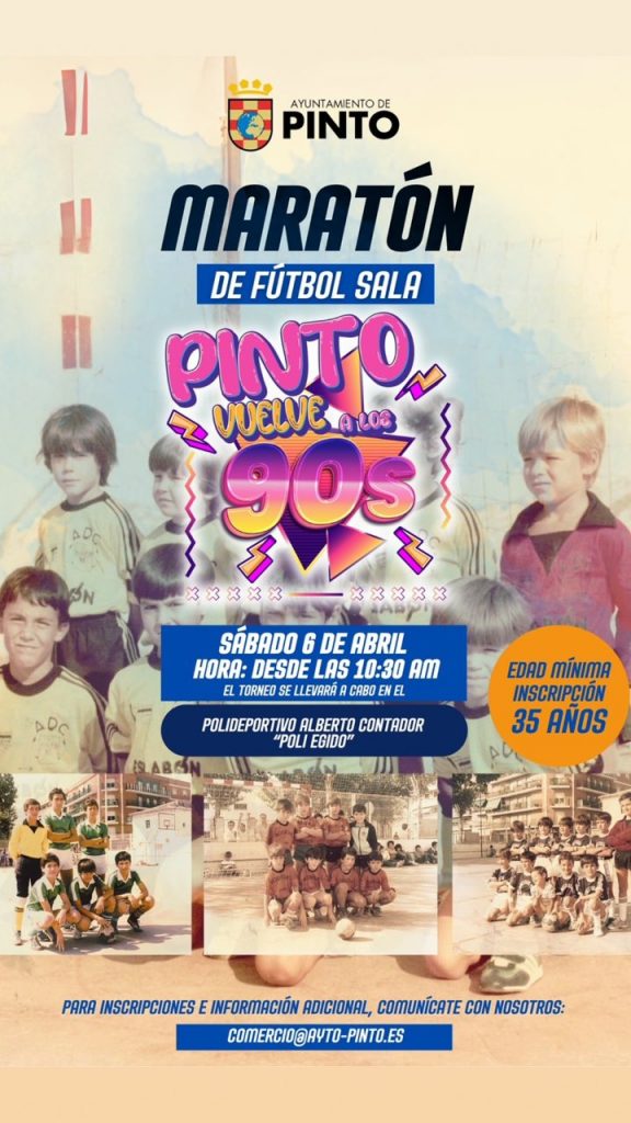 El único requisito para participar es tener de 35 años adelante y muchas ganas de jugar al fútbol sala con aquel magnífico ambiente ‘noventero’. Las inscripciones ya están abiertas a través del correo comercio@ayto-pinto.es.