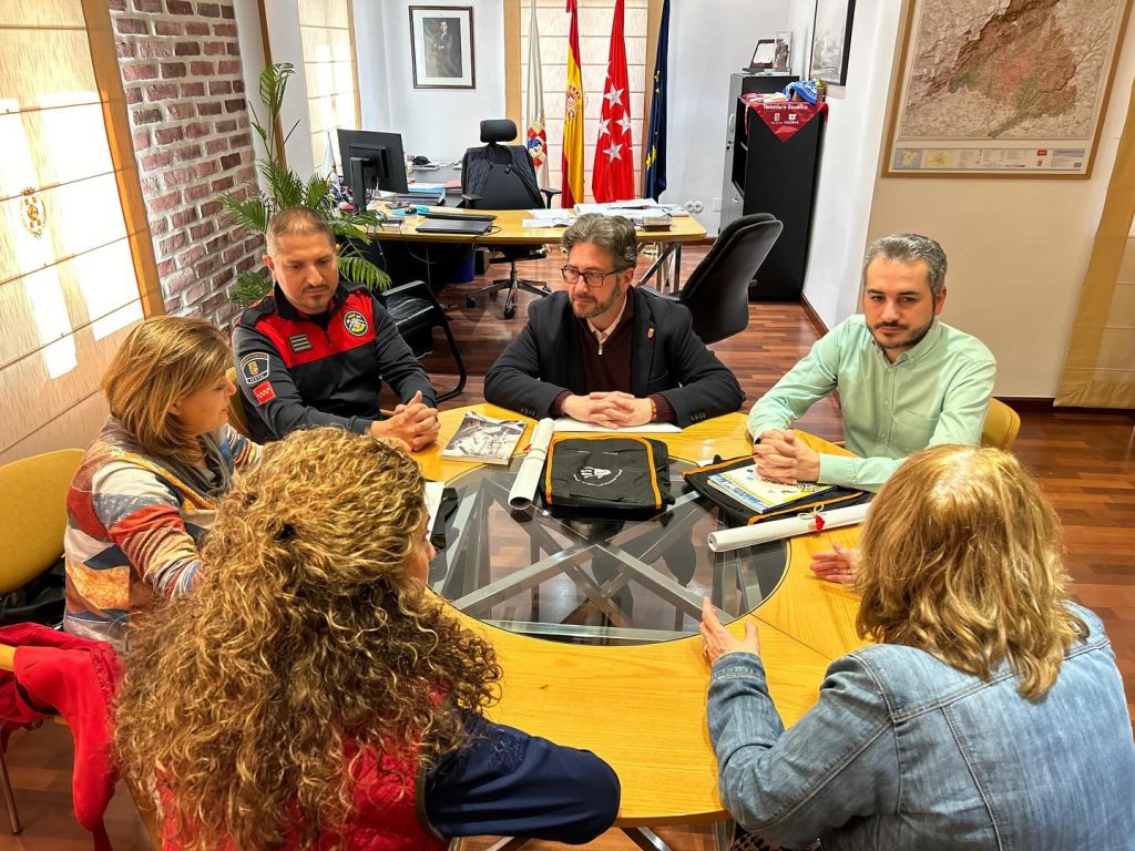 El alcalde de Pinto, Salomón Aguado, el segundo teniente de alcalde, Fernando González, y el jefe de PIMER Protección Civil, David Rodríguez, se han reunido en el Ayuntamiento con María Carmen Duque del Río, presidenta de la Junta Gestora de SEEUE, quien ha agradecido la disposición y el apoyo del Equipo de Gobierno local.